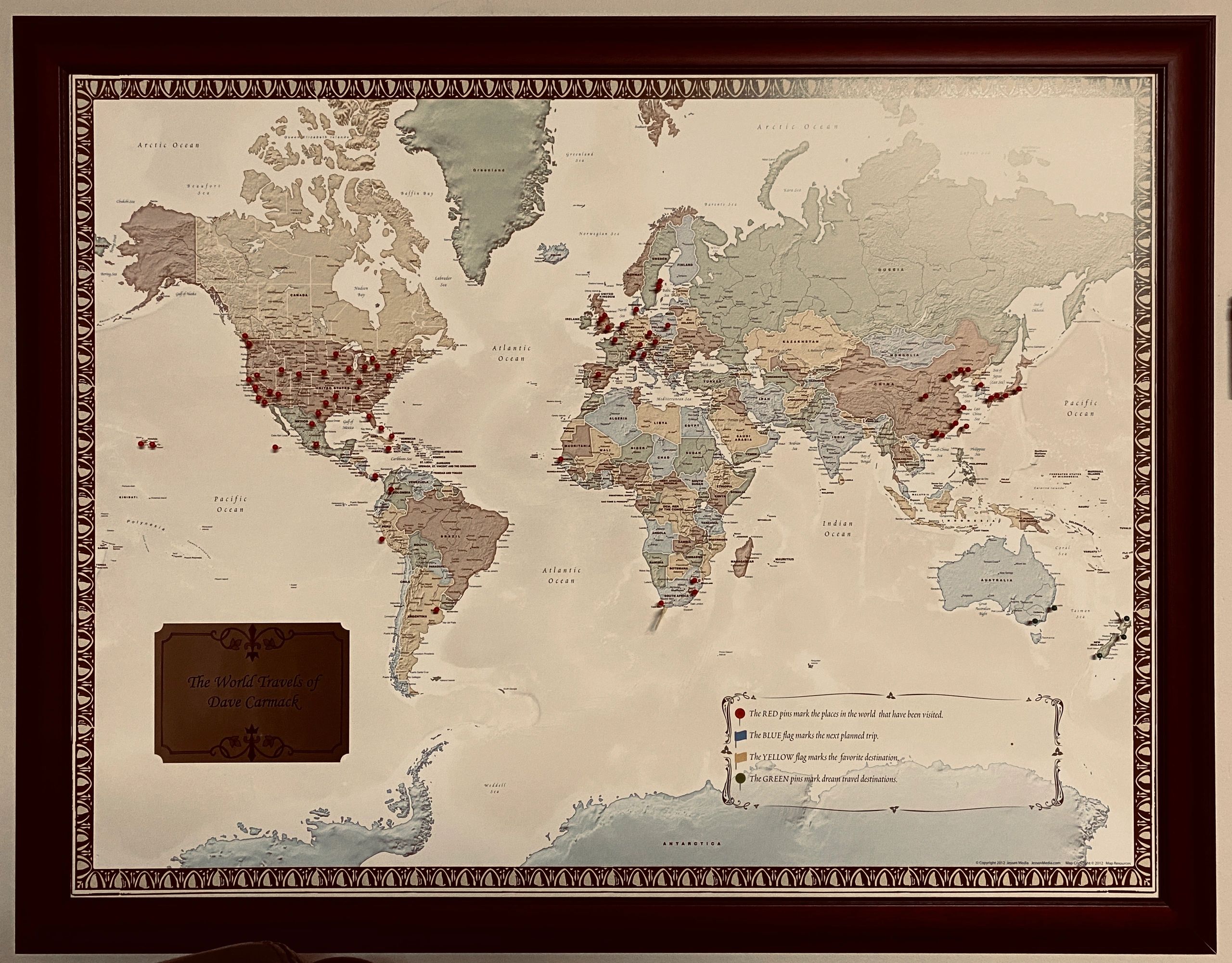 A list of countries he has visited.